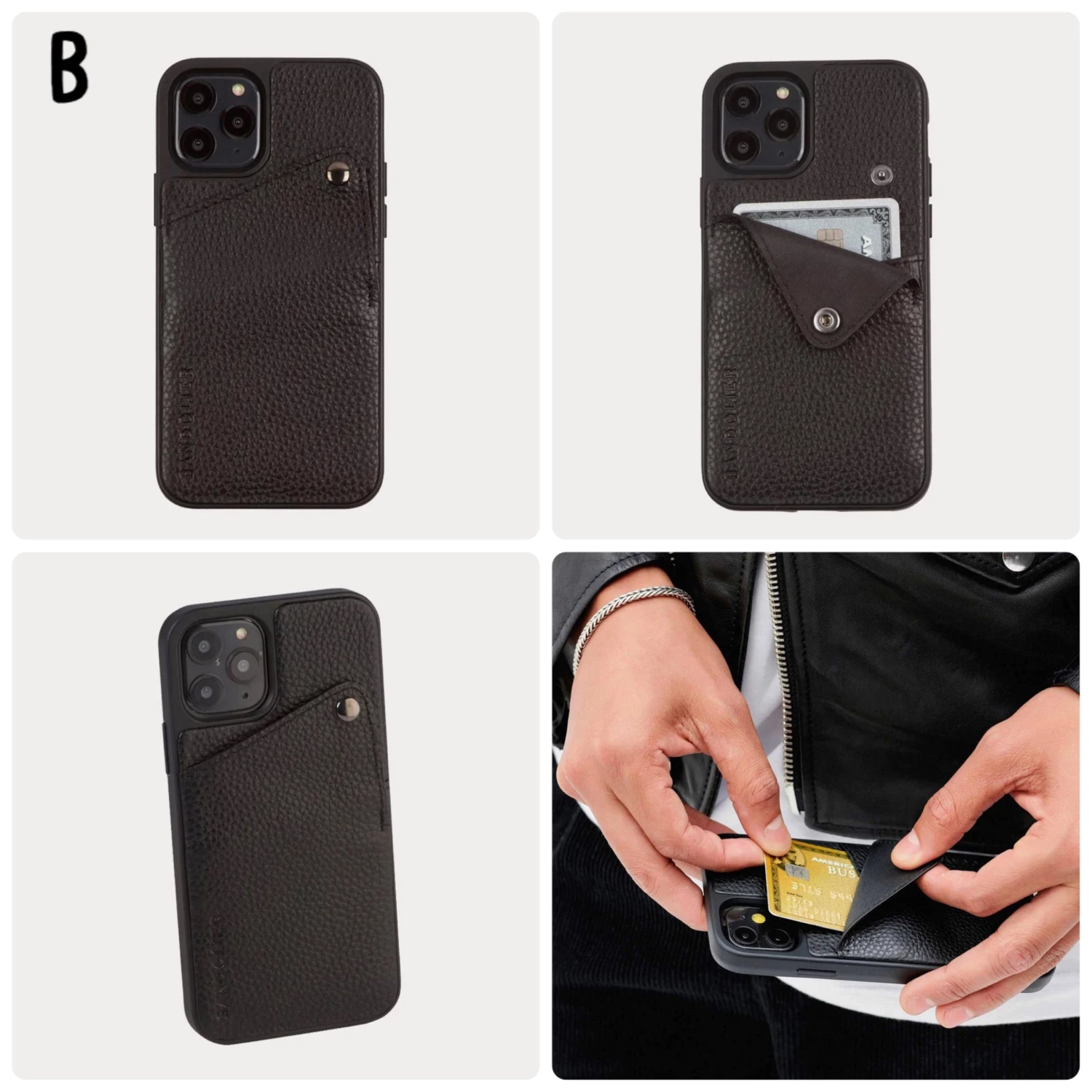 Card Holder Style from Bandolier, Plain, iPhone 13, iPhone 13 mini, iPhone 13 Pro, iPhone 13 Pro Max, iPhone 11 Pro, iPhone 11 Pro Max, iPhone 11, iPhone XS, iPhone XS Max, iPhone XR, iPhone X, iPhone 8, iPhone 8 Plus